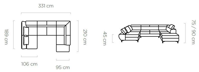 U veida ādas stūra dīvāni