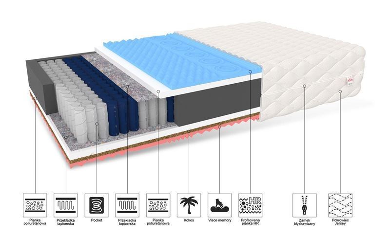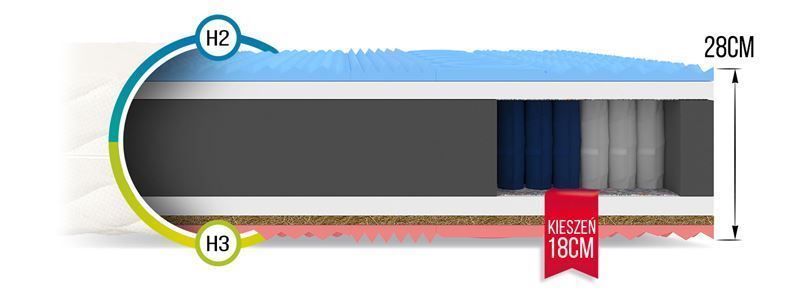 GINASO MAX matrača pamatne ir kabatas atsperes. Kabatas atsperes tiek izgatavotas ar NanoHARD tehnoloģiju, divkārši rūdīta stieple ievērojami pagarina to kalpošanas laiku. Pateicoties 7 dažādu cietības zonu izmantošanai, matracis nodrošina ergonomisku ķermeņa stāvokli atpūtas laikā. Atsperu neatkarīga darbība novērš lielas matrača virsmas lieces efektu, nospiežot tā mazo virsmu. Pateicoties tam, otrs cilvēks nejūt jebkādu kustību. Kabatas ieliktni ieskauj T25 poliuretāna putas, izturīgas pret deformācijām. Perfektu ventilāciju nodrošina profilētas putas ar augstu izturību. Izgatavots no miljoniem burbuļu, tas nodrošina matrača perfektu atbilstību ķermeņa anatomiskajai formai un garantē miega komfortu. Kokosriekstu ieliktnis novērš pelējuma, ērces un sēnīšu augšanu. Tas arī padara matraci stabilāku. Termoplastisko putuplasta VISCO siltuma un spiediena ietekmē pielāgojas ķermeņa formai.