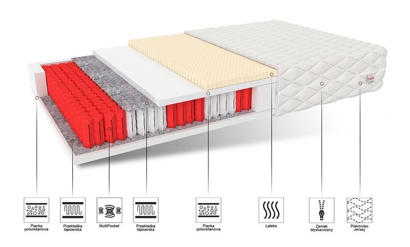 RIMINI MAX matracim ir daudzkabatu tipa atsperes, kas to sadala 7 cietības zonās. Atsperu ir vairāk nekā standarta kabatas atsperēs. Tie strādā neatkarīgi viens no otra, lai divi guļoši cilvēki nejustu diskomfortu savstarpēju kustību dēļ. Viņiem raksturīga augsta izturība pret deformācijām un iespiedumiem. Tie ir izgatavoti pēc NanoHARD dubultās rūdīšanas tehnoloģijas, kas ievērojami palielina to kalpošanas laiku. Poliuretāna putas nodrošina figūras amortizāciju, tām ir gaisīga struktūra un izturīga pret deformācijām. Matracī izmantotais lateksa slānis uzlabo gulēšanas komfortu, optimāli pielāgojoties ķermeņa formai. Īpaši kanāli nodrošina pietiekamu gaisa cirkulāciju, kas dod maigu vēsuma sajūtu.